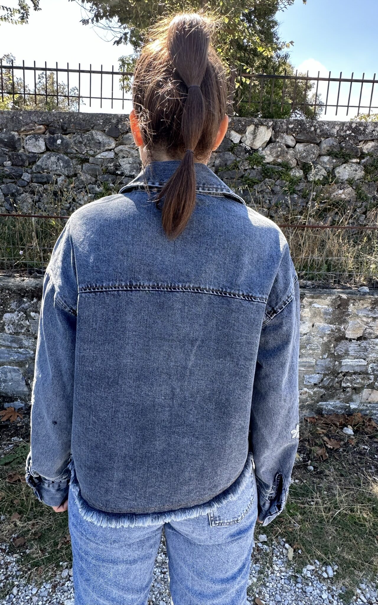 - Τζιν τζάκετ με κέντημα λουλούδια.