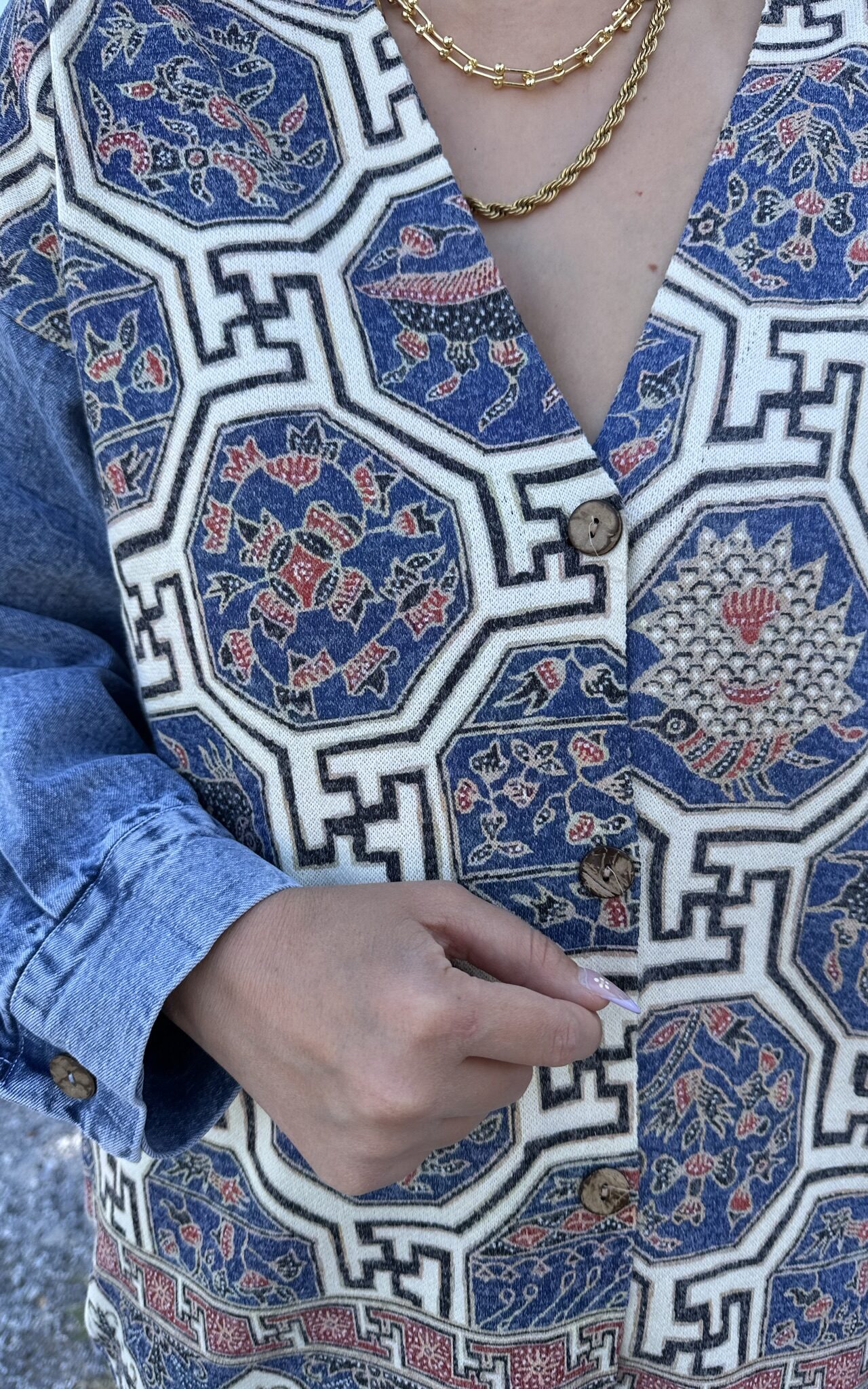 Ζακέτα Με Σχέδια Και Τζίν Μανίκι