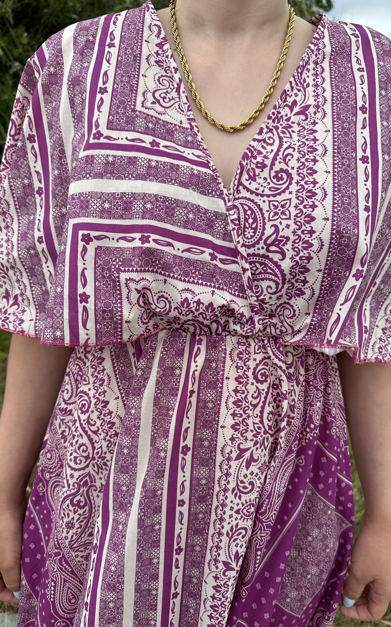 Boho φόρεμα κρουαζέ, με αέρινα μανίκια και λάστιχo κάτω από το στήθος.