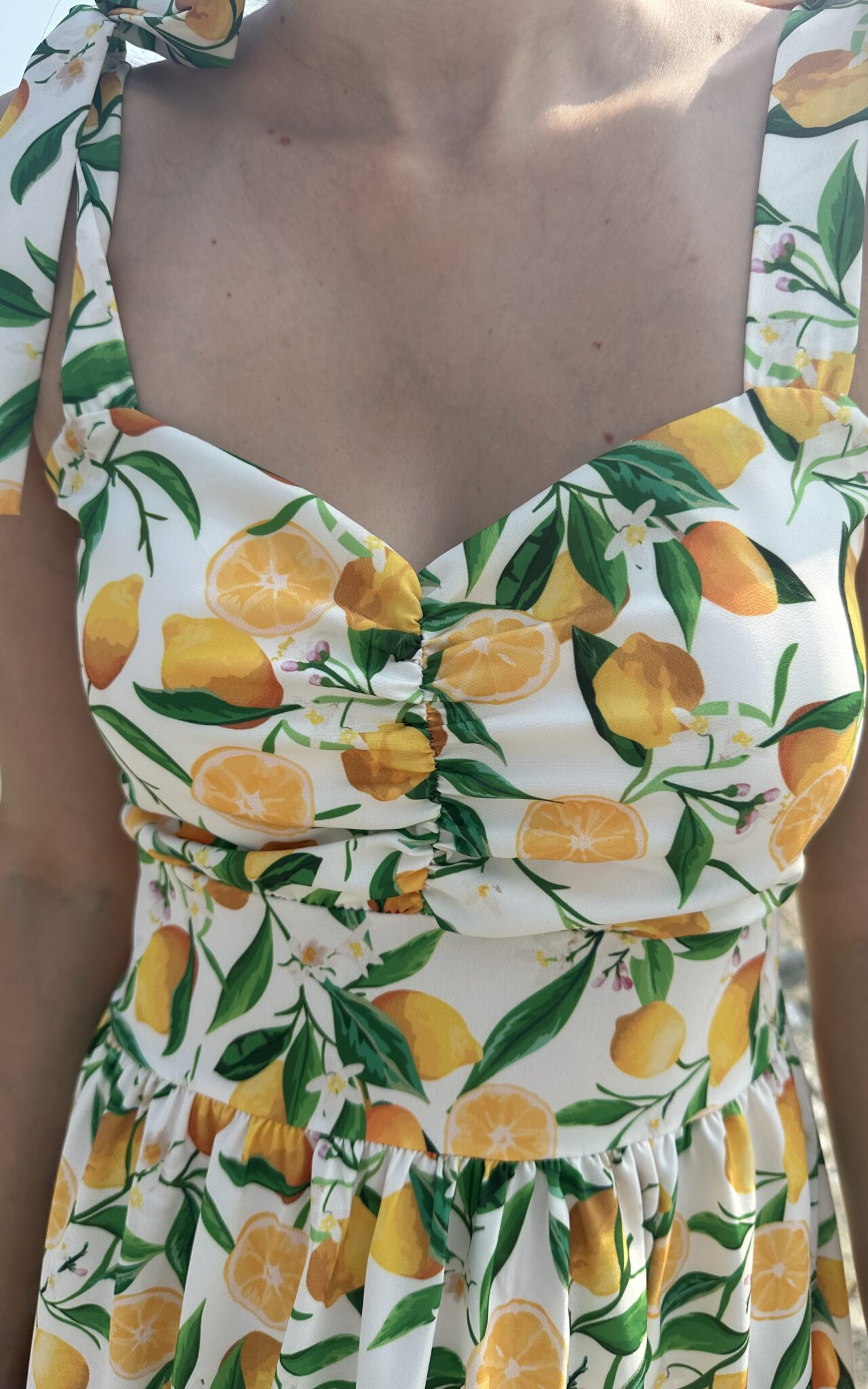 - Φόρεμα με σταθερές τιράντες με φιόγκο.