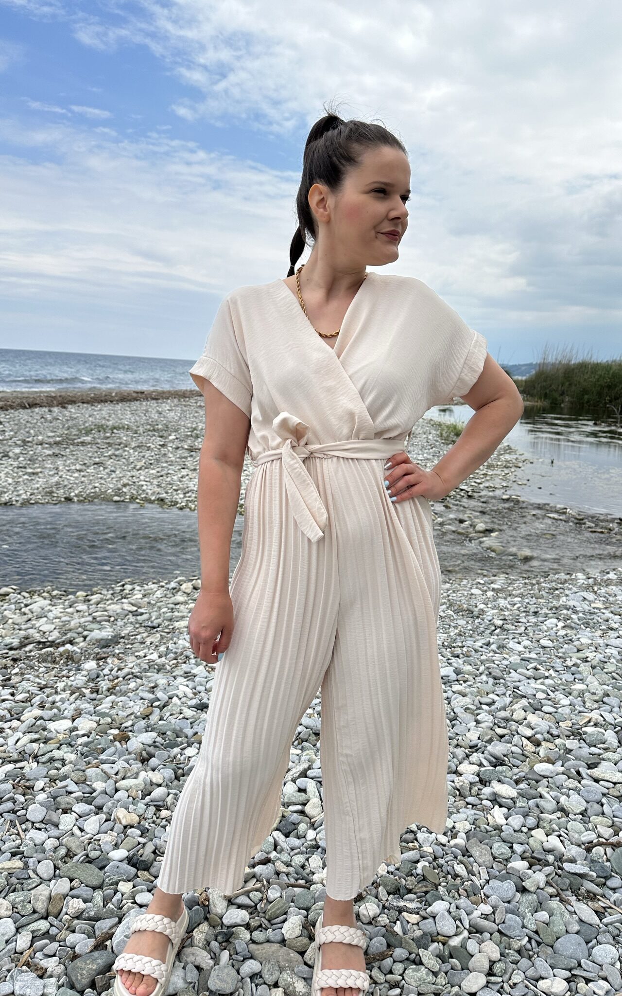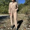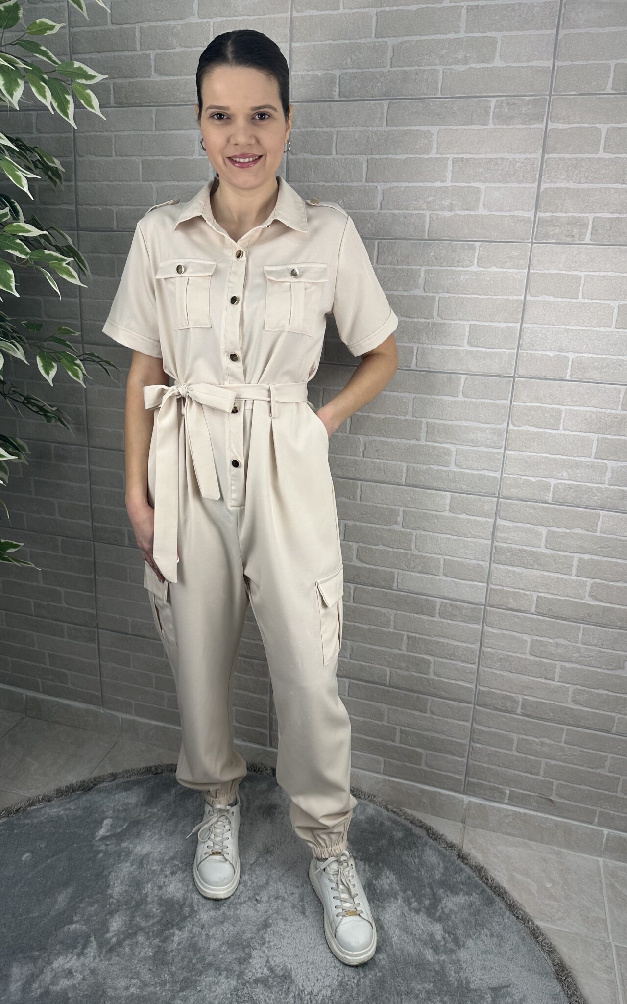 Ολόσωμη φόρμα με γιακά, τσέπες με καπάκι στο πάνω μέρος αλλά και στο πλάι, λάστιχο στην μέση και στο τελείωμα και σταθερή δετή ζώνη! Κλείσιμο μπροστά με φερμουάρ!
