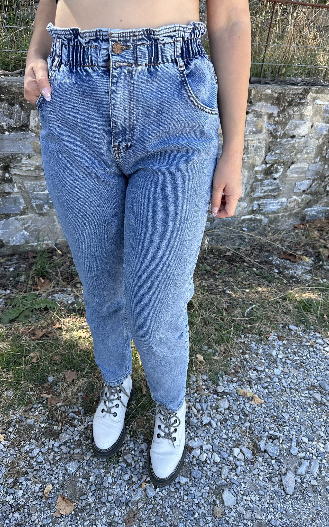 - Τζιν παντελόνι mom fit.