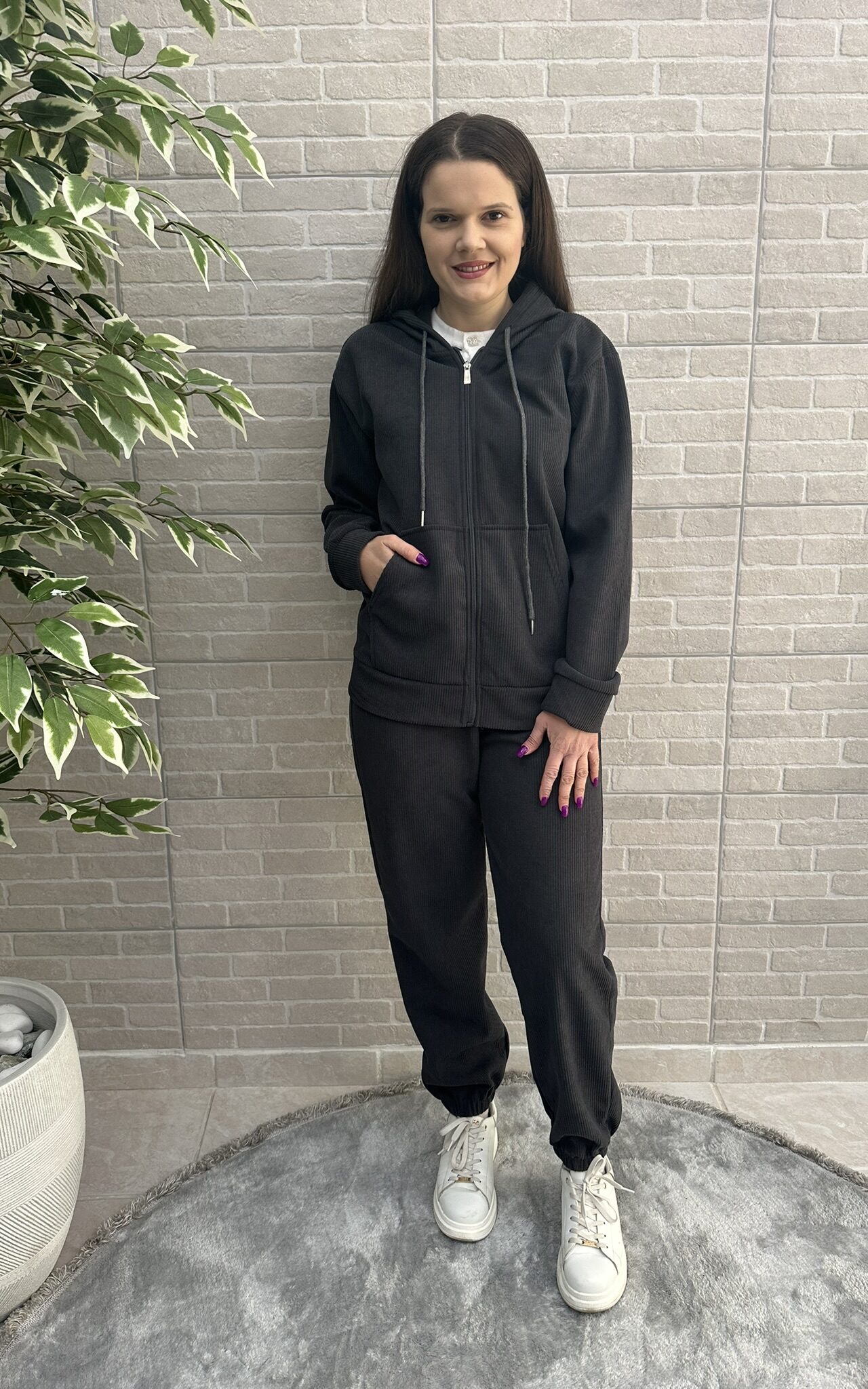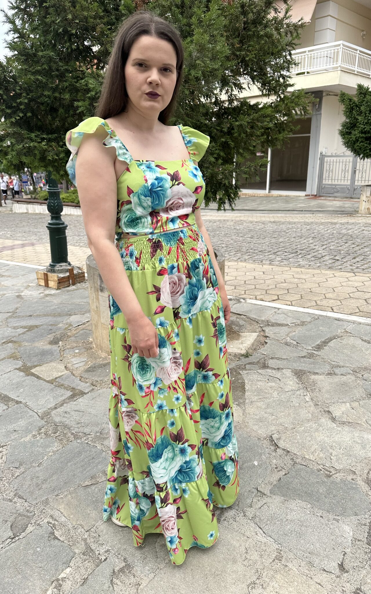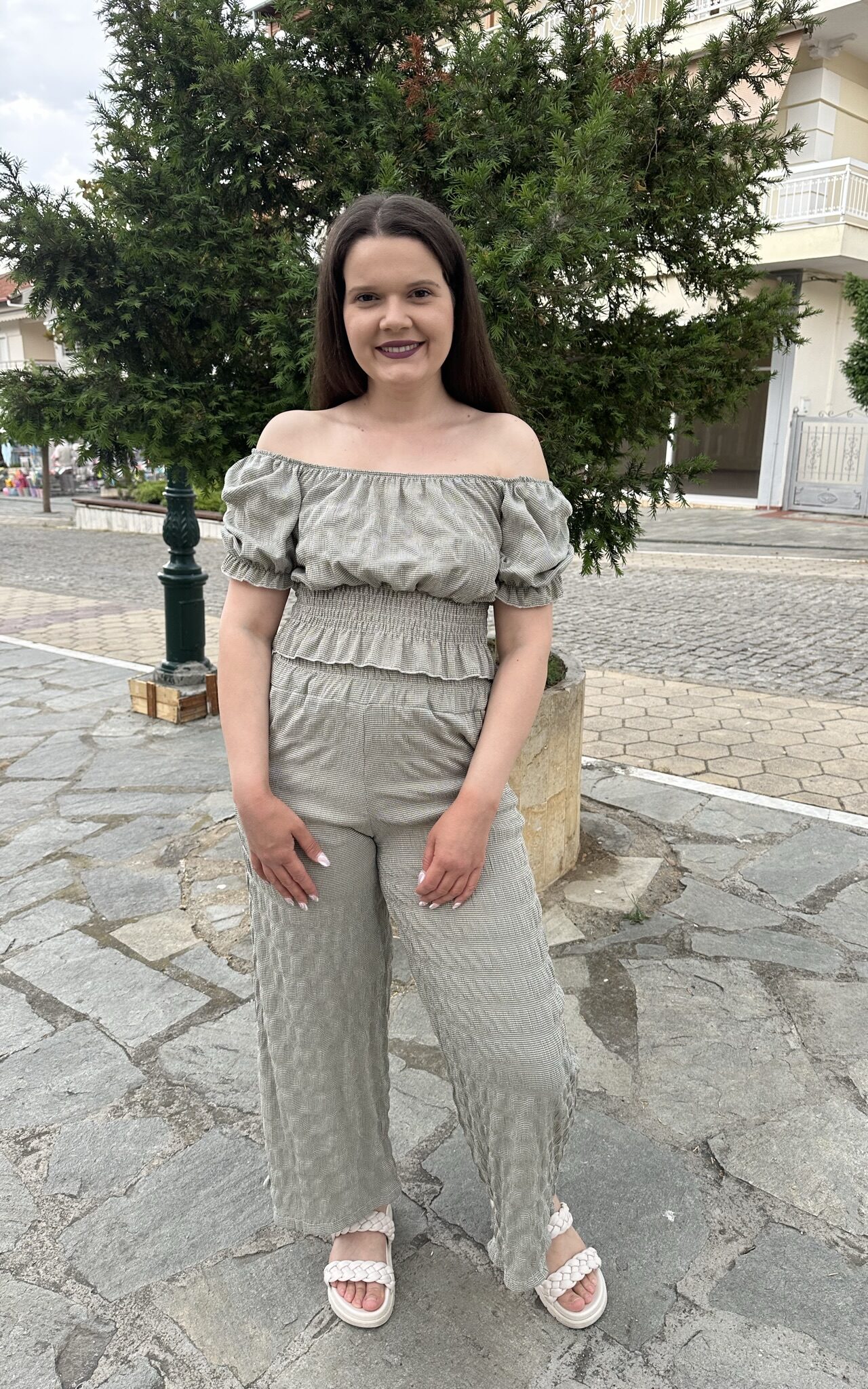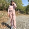 Σετ σε άνετη γραμμή, που αποτελείται από πουκάμισο με γιακά, κουμπιά σε όλο το μήκος, τσέπες με καπάκι στην μπροστινή πλευρά και πιέτα στο πίσω μέρος και παντελόνι με λάστιχο στην μέση και τσέπες στο πλάι!