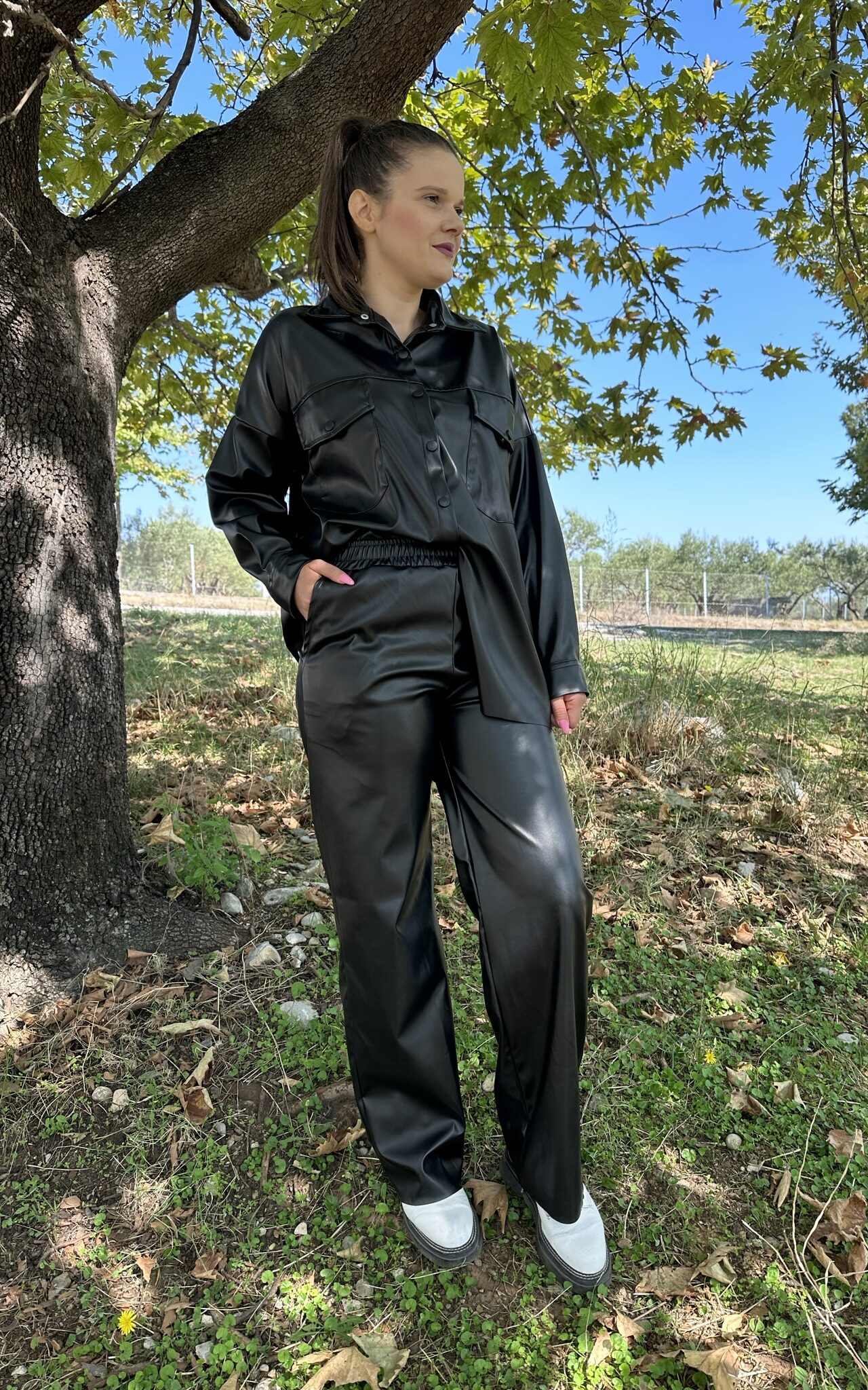 Σετ Παντελόνι Και Πουκάμισο – Δερματίνη Μαύρο
