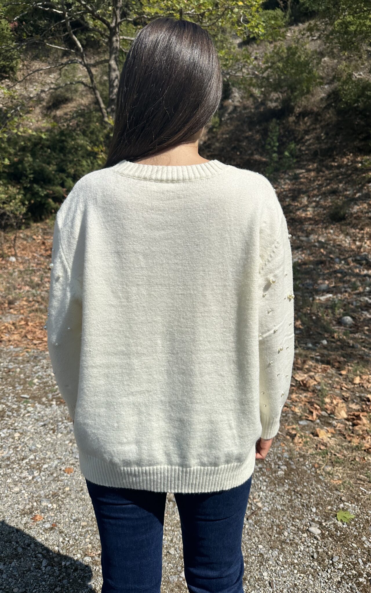 Πουλόβερ με πέρλες στην μπροστινή επιφάνεια και στα μανίκια, με στρογγυλή λαιμόκοψη!