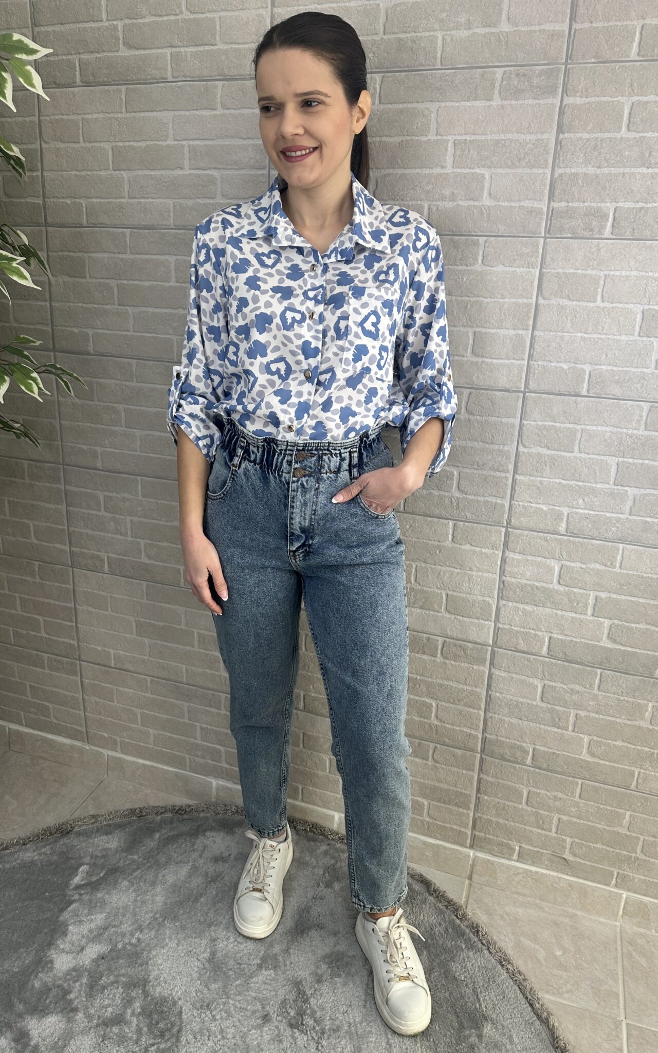 Πουκάμισο με μπλέ καρδούλες και μακρύ μανίκι το οποίο μαζεύεται και γίνεται τρουακάρ άνετη γραμμή!